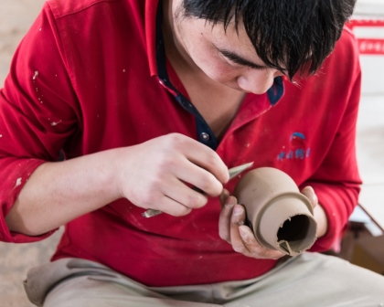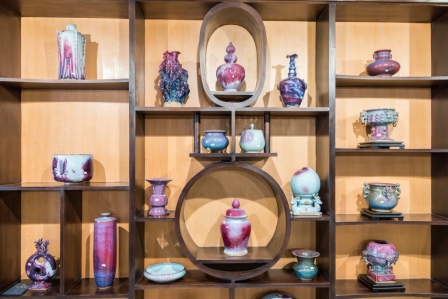 行程中,我们先后参观了坪山钧窑钧瓷生产流程线、大宋官窑钧瓷精品展,了解钧瓷拉胚、雕刻、上釉、着色、烧制等制作工序,欣赏了钧瓷那种古朴端庄的造型、出神入画的窑变、精美绝伦的釉色、雅而不俗的韵致所震撼,真真切切体会到了“入窑一色,出窑万彩”的钧瓷艺术。