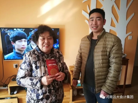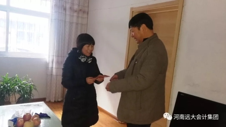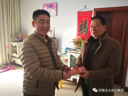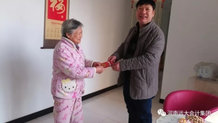 2018年1月31日至2月3日,河南远大会计集团行政运营中心先后到15名员工父母家中,带着集团的情意送去感恩金,并通过银行汇款的形式向8位家在外地的员工父母发放感恩金。